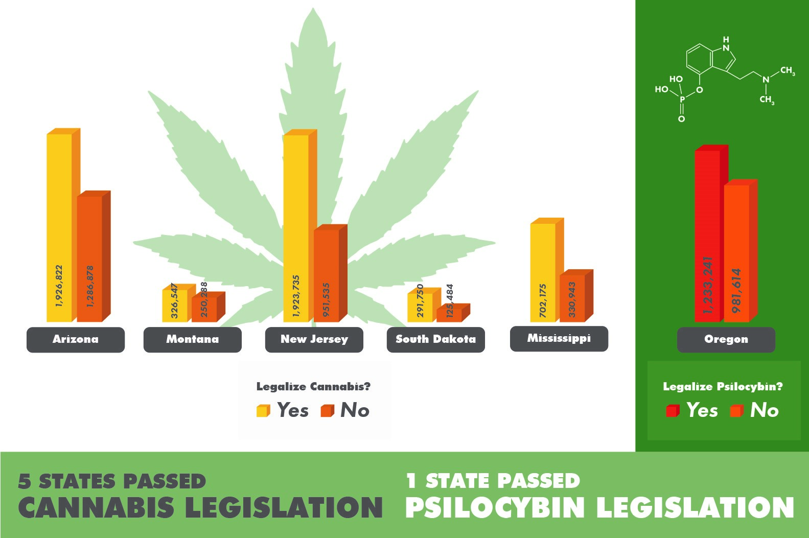 - 1,259,243 of eligible Oregon voters, voted in favor of legalizing Psilocybin.