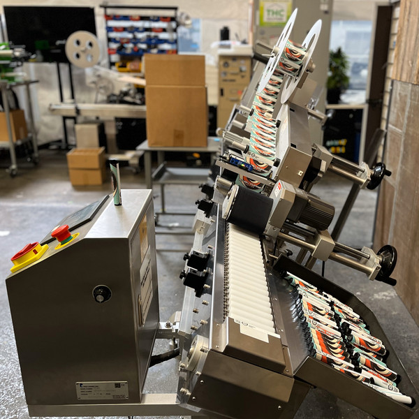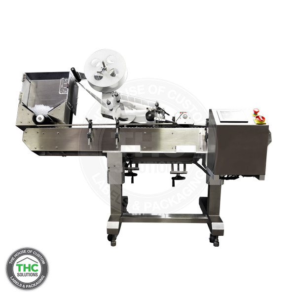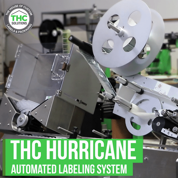 The THC Hurricane applies labels to pre-roll tubes.