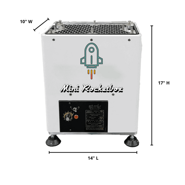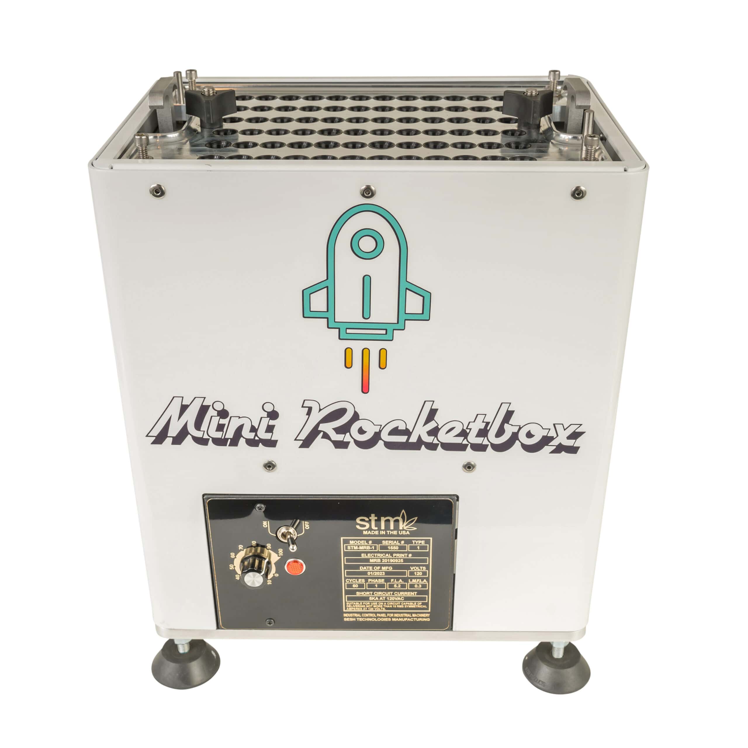 The Mini-RocketBox Plus+ outshines competitors with superior build quality, versatility, and speed. It’s uncomplicated to operate and clean and doesn’t require pre-weighing; simply fill and go.The Mini Rocketbox Plus outpaces the Knockbox, filling up to 143 pre-rolls in under a minute – game-changer for high-volume output. STM Canna machines are made here in the USA and provide durable stainless steel and aluminum construction that outclases plastic competitors, ensuring reliability and longevity. Advanced lift plate and top tray technology guarantees perfectly filled, uniform pre-rolls for a consistently satisfying customer experience. The Mini RocketBox Plus also handles various cone sizes with ease, keeping you ahead of market trends.