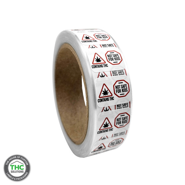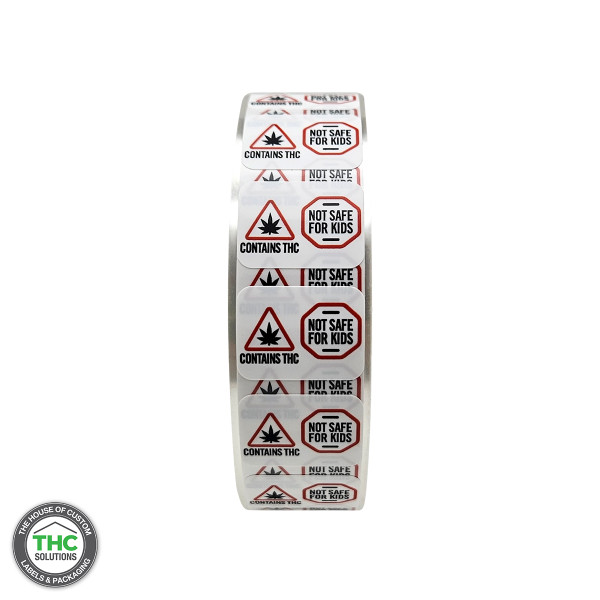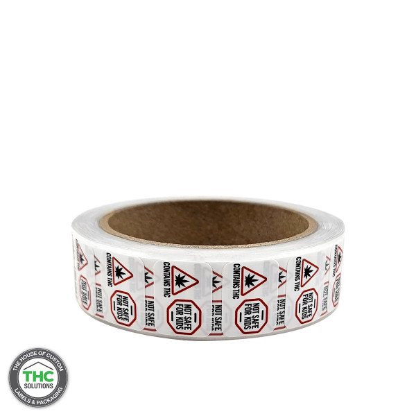 Massachusetts and Maine Symbol "Contains THC & Not Safe For Kids", 1" x 0.75" (Qty 1,000 Per Roll)